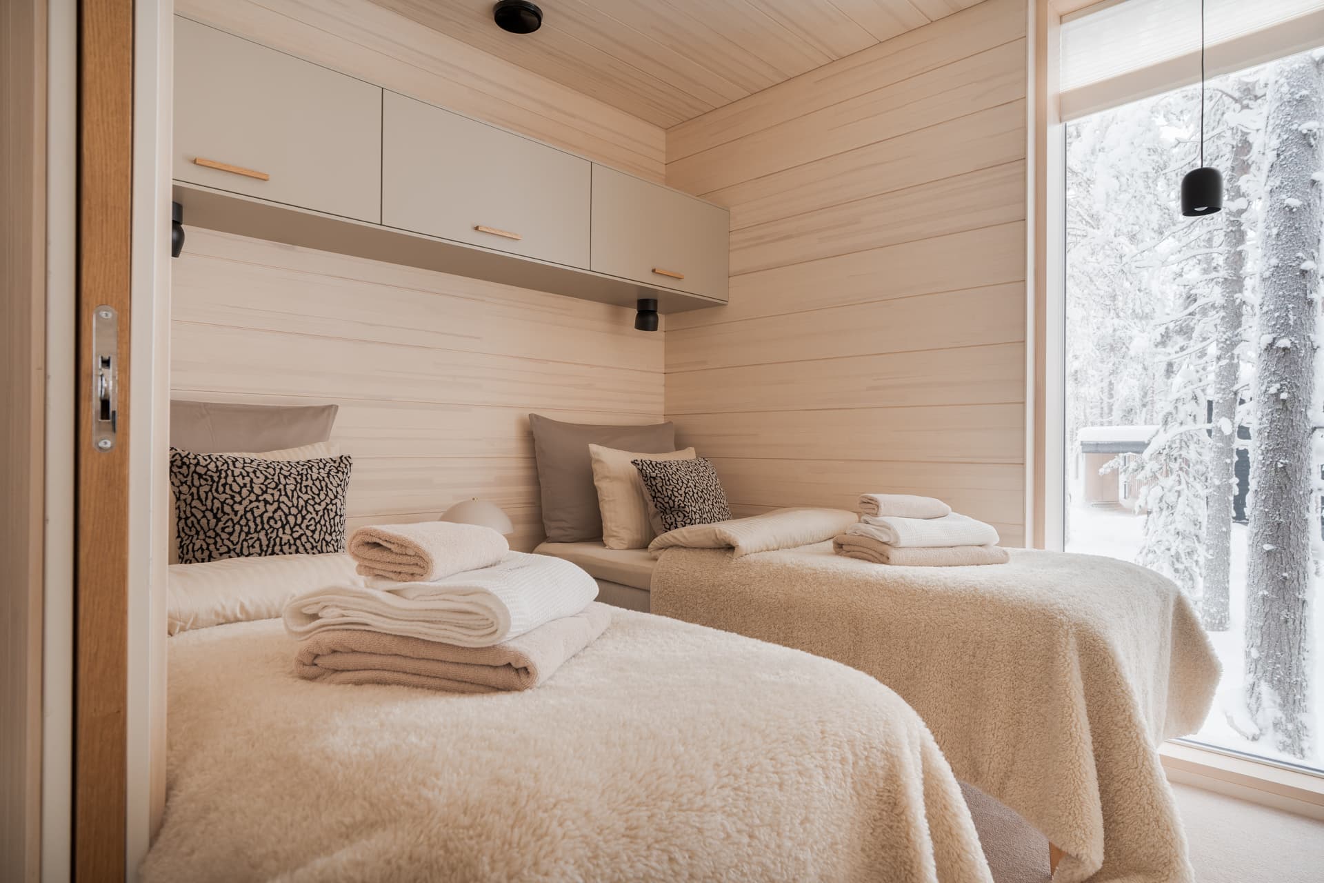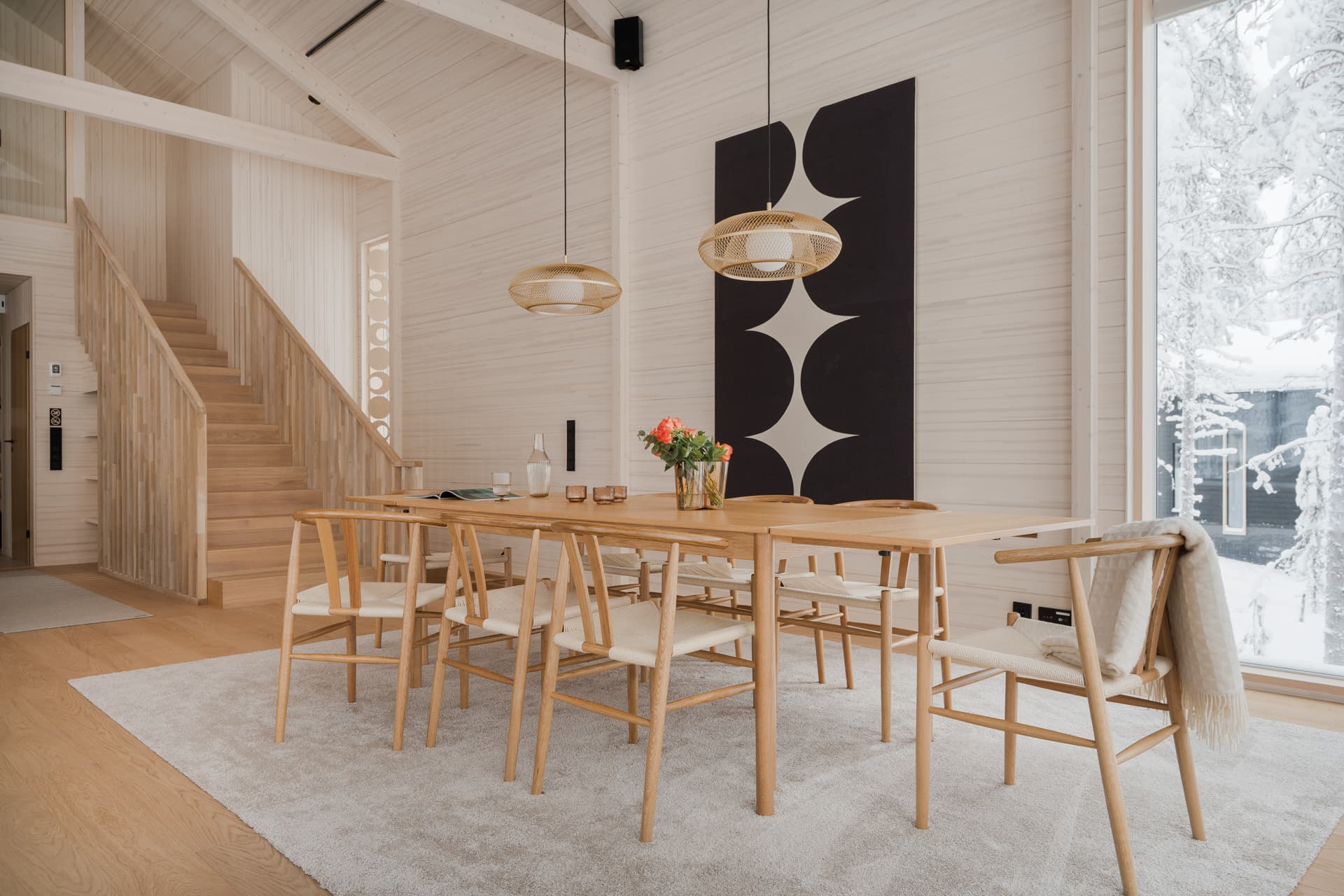 Arctic Design Villa is crafted for peaceful and luxurious moments in the heart of Lapland’s nature. Located in Levi, this exclusive villa combines high-quality natural materials with timeless Scandinavian style. Soft wall-to-wall carpets pamper your feet, while plush bedding promises hotel-standard sleep. With spacious open layouts, Arctic Design Villa is the perfect choice for family getaways or elegant gatherings – a refined retreat where comfort and style meet without compromise.